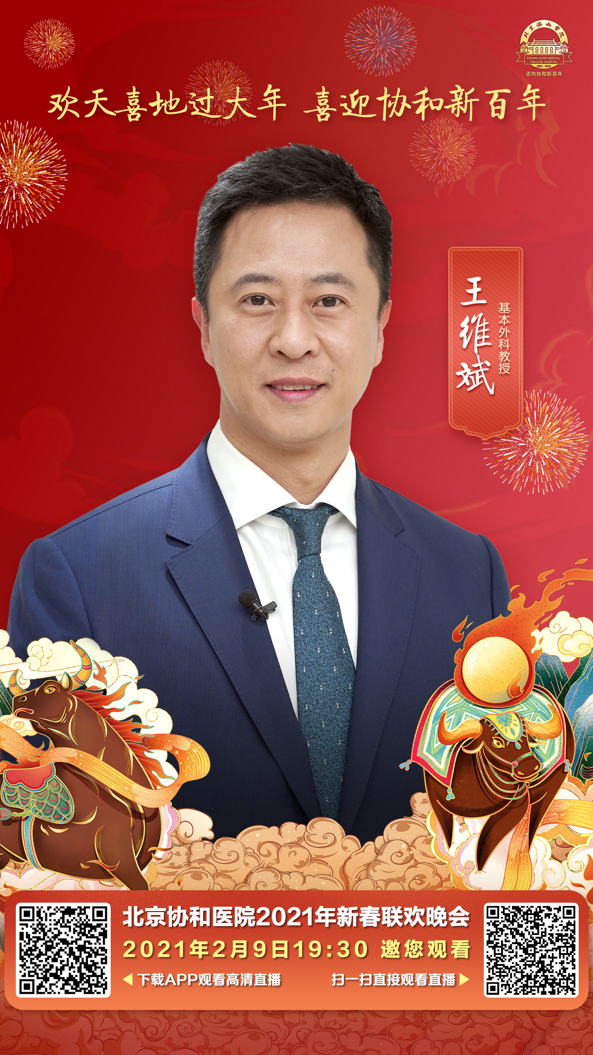 协和基本外科教授 王维斌送来祝福